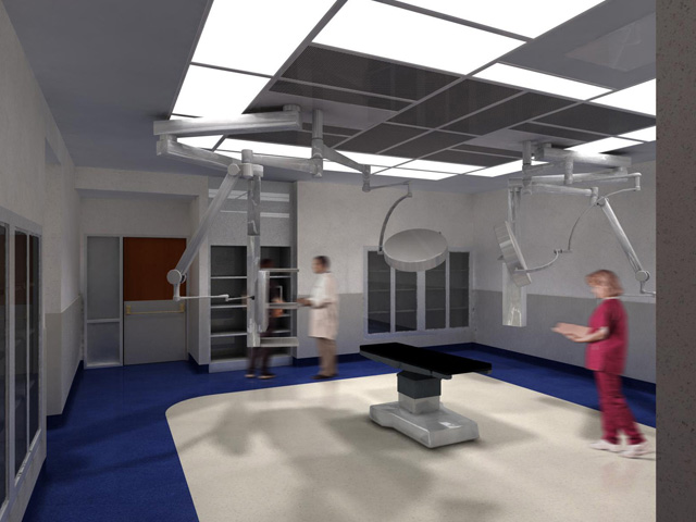 I was responsible for modeling, lighting, and rendering the interior space and equipment using 3ds Max and AutoCAD. The surgery tower was rigged for animation so it could be placed in any pose within the room.