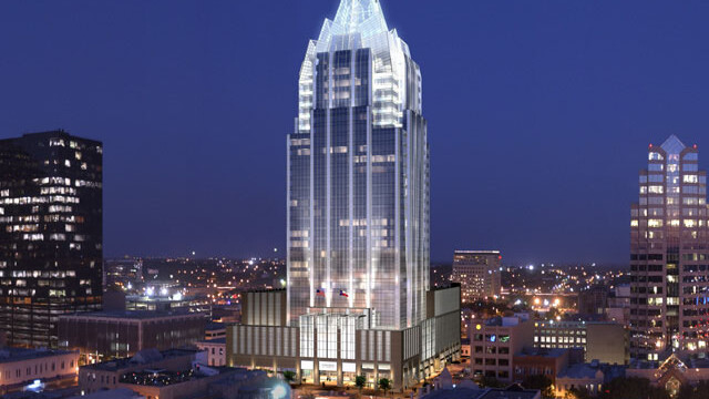 Our client needed visuals of this iconic tower to show its impact day and night in the Austin skyline. The interiors of the lobby and entry were required to illustrate how the building fit into the surrounding urban fabric.