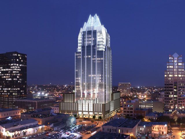 Our client needed visuals of this iconic tower to show its impact day and night in the Austin skyline. The interiors of the lobby and entry were required to illustrate how the building fit into the surrounding urban fabric.