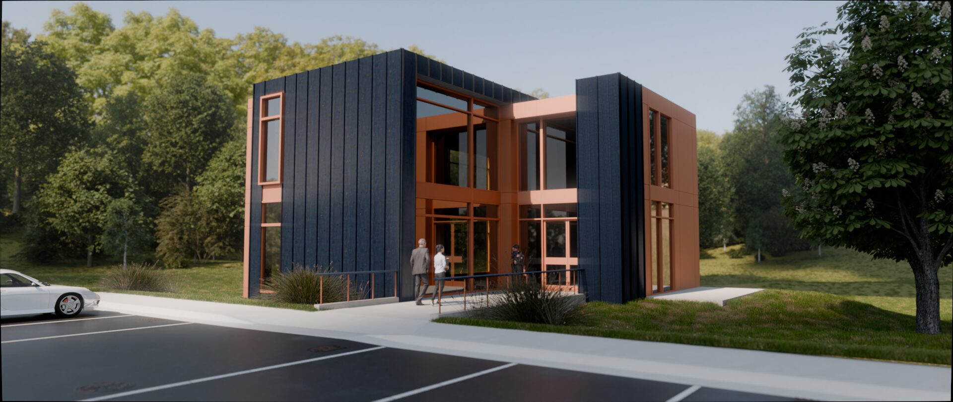 I was responsible for designing and modeling the building, site, and lighting, and for creating the renderings.